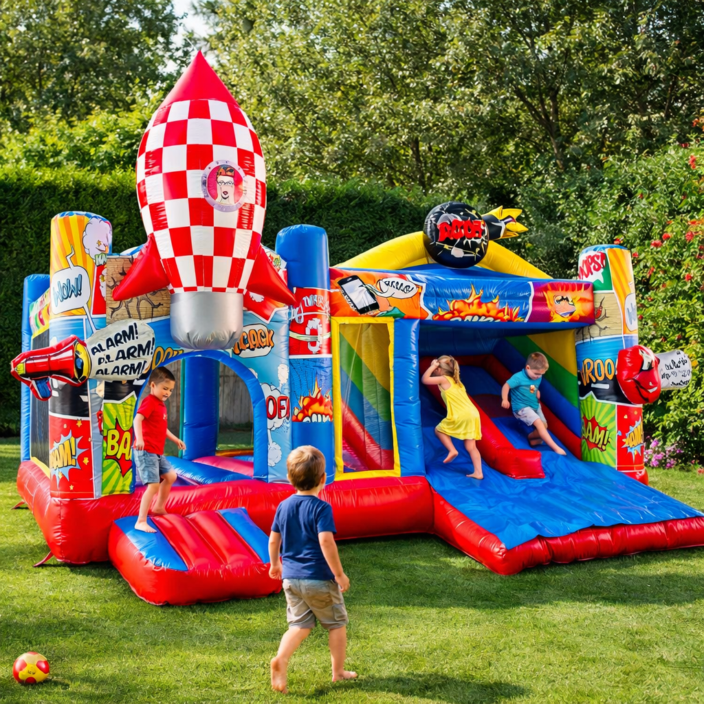 Designed for non-stop action, our Multiplay bounce houses feature larger play areas, obstacles, slides, and interactive elements. Perfect for keeping kids engaged longer and ideal for high-traffic rental use.